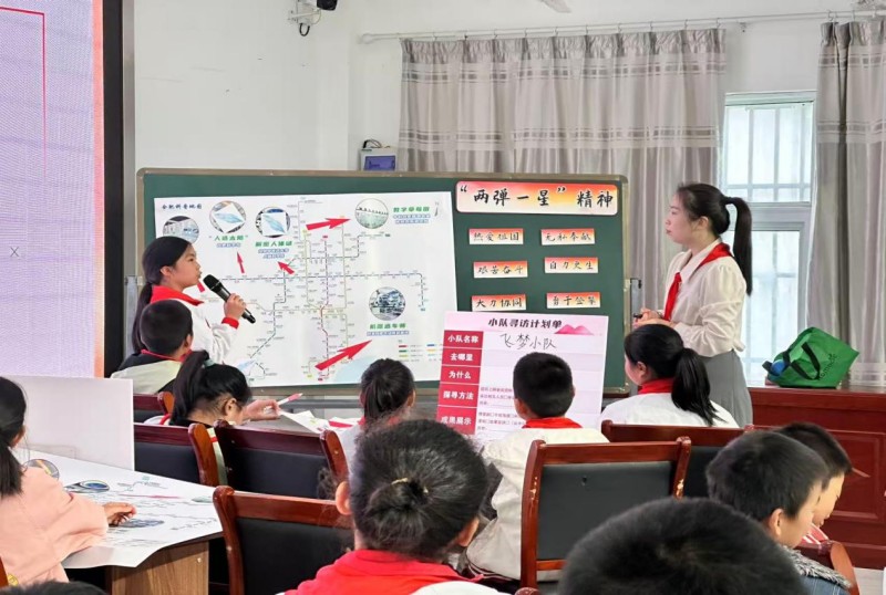 李畅老师则为四至六年级学生讲授少先队课《传承“两弹一星”精神,争做科技先锋》。她从合肥的科技发展讲到无名英雄的奉献精神,层层推进,激发学生爱国情怀与求知欲望。孩子们眼神灼灼,踊跃发言,思想的火花在城乡师生的对话中悄然迸发。