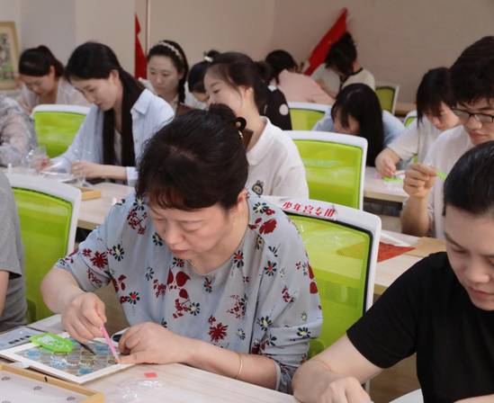 5月23日下午红星路小学教育集团工会组织开展了一场教师心理疗愈沙龙——非遗宋锦+珍珠曼陀罗疗愈画创作体验活动。压力就像琴弦,绷得太紧会断,松弛无度则无声,而今天的活动为老师们带来一剂“心理解压处方”,通过指尖创作与心灵疗愈的双向奔赴,为老师们带来心灵的浸润,让美丽在指尖绽放。
