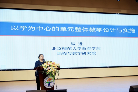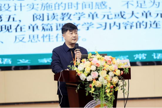 随后,北京师范大学易进教授作专题讲座,从“单元整体教学的内涵厘清”到“基于学习内容类型的单元设计方法”,系统构建理论框架,为实践提供支撑。易进教授特别强调,单元整体教学的终极目标是引导学生实现系统学习与知识结构化,最终达成“教—学—评”一致性,为语文育人提质增效。