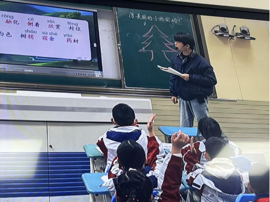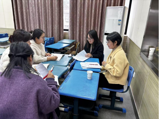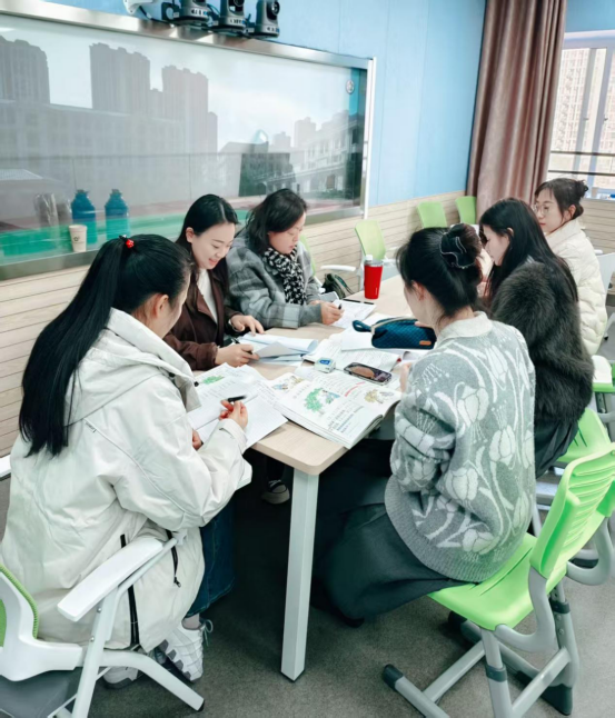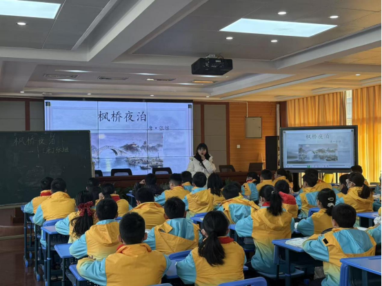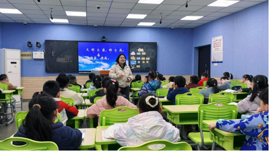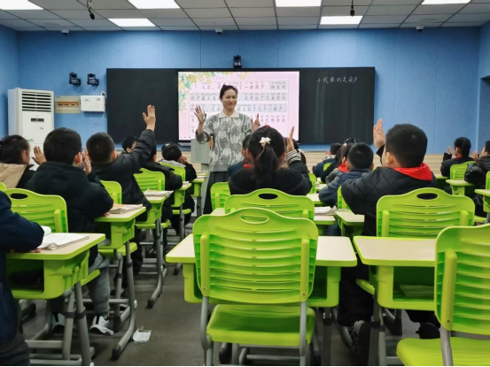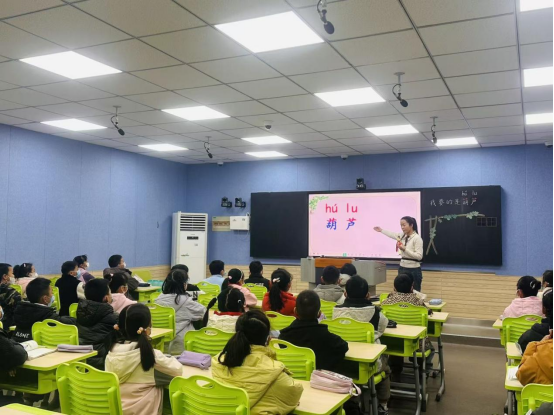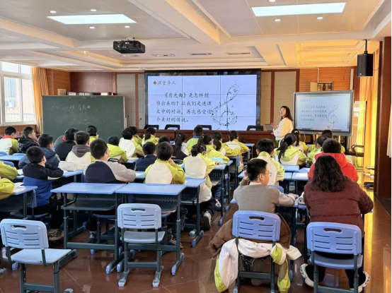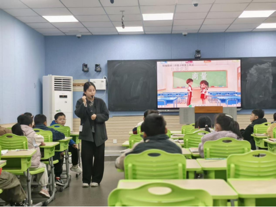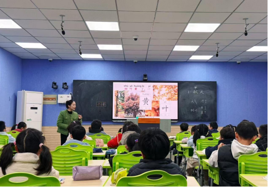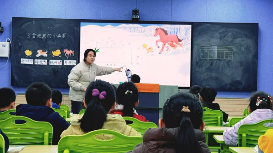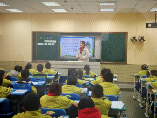 一年级组丁亚君老师、余媛媛老师接力《秋天》,通过“感官体验”“情境演读”帮助学生认读生字、感知课文;张勤老师、林敏老师围绕《雪地里的小画家》,设计“仿说句子”活动,巩固单元表达能力。
