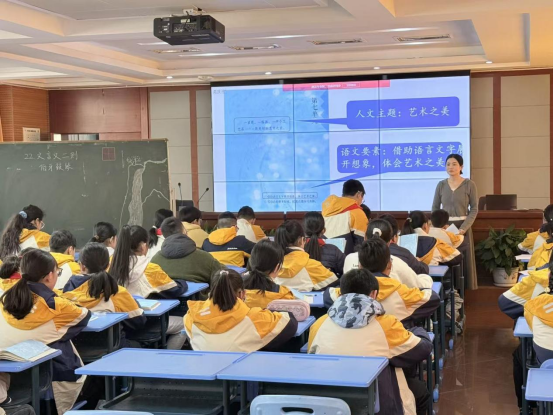 无为路校区围绕“艺术之美”(六上第七单元)和“自然之趣”(五上第七单元)两个主题展开教学研讨。