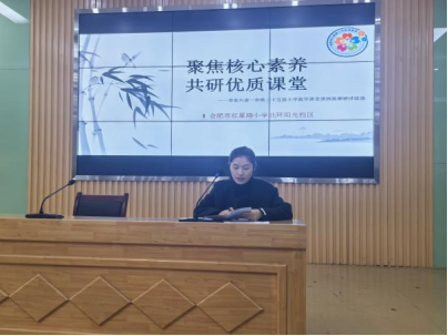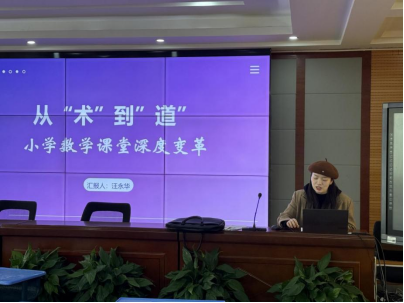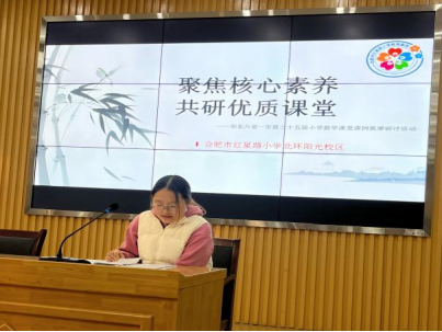 活动尾声,亲临现场观摩的汪永华老师以《从“术”到“道” 小学数学课堂深度变革》为题,分享了学习心得。她指出,当前小学数学课堂正呈现四大转型趋势:任务驱动、素养落地、学习进阶、技术赋能,并响应提出四条实践策略——创设“有根”的情境、设计“具身”的活动、搭建“可见”的支架、实施“生长型”评价,以此推动教研范式更新与优质教研生态构建。汪老师还转达了集团书记方业菊的期望:鼓励全体红星教研人主动顺应课堂变革,把握机遇、迎接挑战,走向更广阔的专业发展舞台。