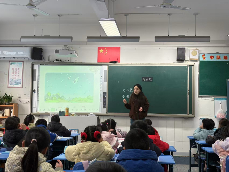 无为路校区率先拉开汇报课帷幕,体育与语文课堂的精彩呈现形成别样呼应。刘腊梅老师的《篮球运球游戏》一课,以趣味互动为载体传授运球技巧,在奔跑与协作中培养孩子们的团队意识和拼搏精神,真正践行了健康第一、快乐体育的教学理念,让课堂充满欢声笑语。桑若楠老师的语文课《雨点儿》紧扣低年级学生认知特点,借助音效、课件演示和角色扮演构建生动情境,搭配多样化朗读指导,逐字逐句引导学生品味课文韵律与童真童趣,扎实的教学基本功尽显其间。