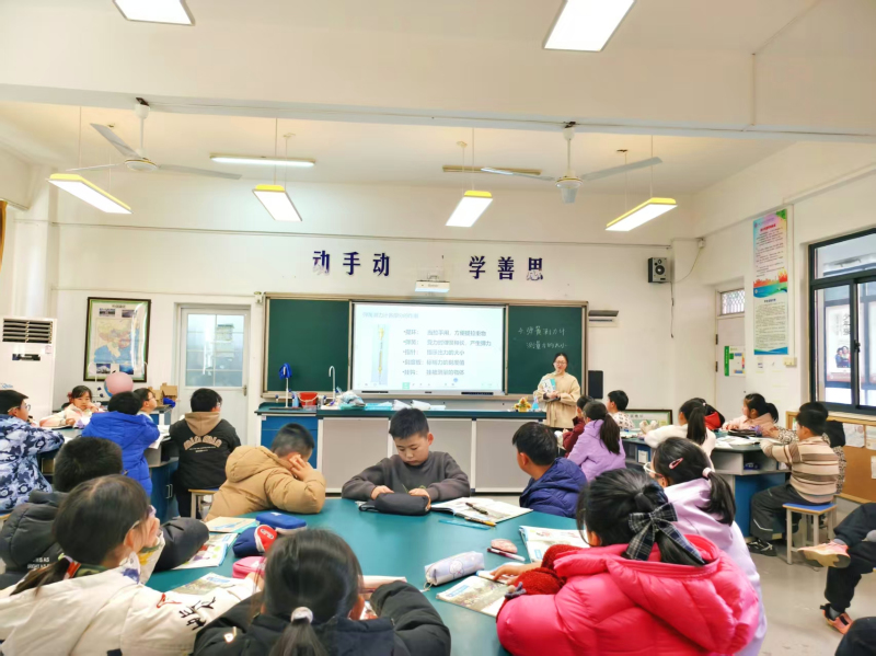北环校区的汇报课聚焦探究式教学与生活化融合,亮点纷呈。刘佳玲老师的科学课《弹簧测力计》从学生熟悉的生活现象入手,一步步激发大家的探究欲望,课堂上注重引导学生学会提问、规范记录、合作探究,切实培养科学核心素养。张亚茹老师的数学复习课《图形的初步认识复习》围绕让知识脉络更清晰、让学习扎根生活的目标设计,通过层层递进的启发式提问,鼓励学生自主总结知识、互助解决难题,真正落实以学生为主体的教学理念。