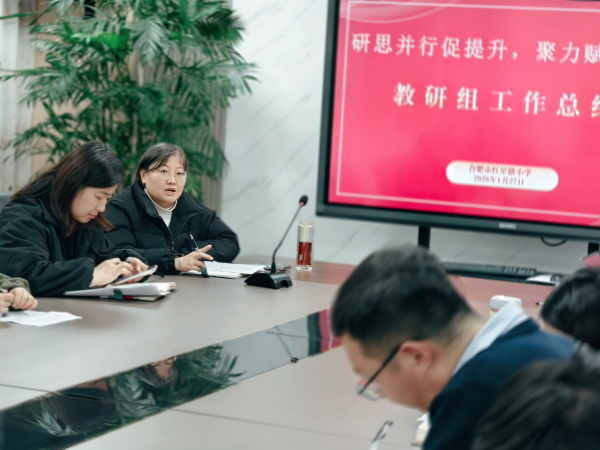 2026年1月27日下午,合肥市红星路小学在无为路校区召开2025-2026学年第一学期教研工作总结会。会议以"研思并行促提升,聚力赋能共成长"为主题,全面复盘本学期教研工作。学校领导班子、三校区教研组长参会,高晓娅副校长主持会议。