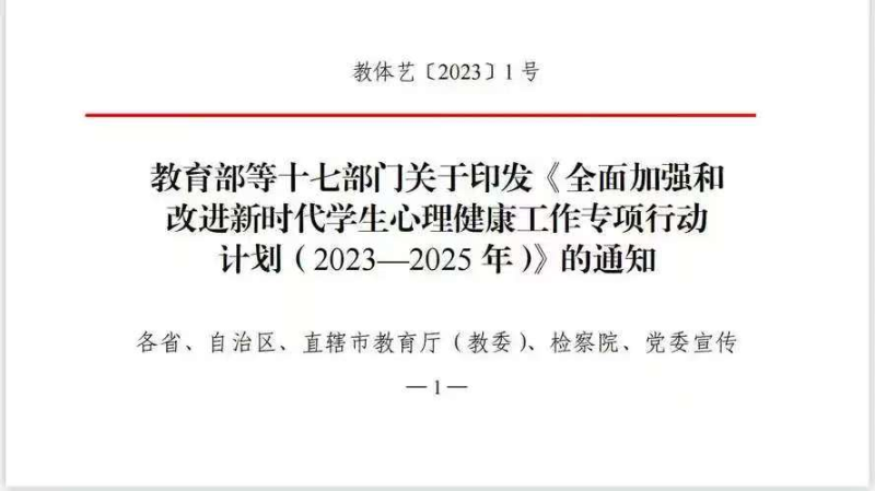 · 《全面加强和改进新时代学生心理健康工作专项行动计划(2023—2025年)》(教体艺〔2023〕1号)。