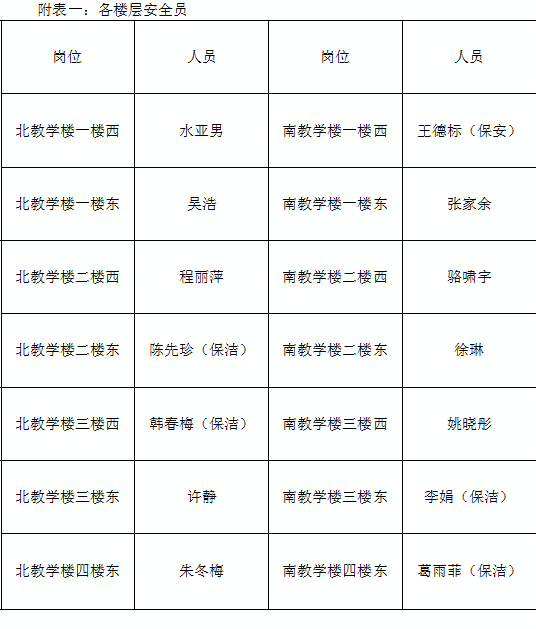 4、安全员维持疏散秩序,保证楼梯通畅,指挥学生适当错开时间,控制速度,逐次疏散。同时根据实际情况提示“大家不要慌,注意脚下,防止滑倒”等提示语,待学生疏散完毕后,方可撤离;