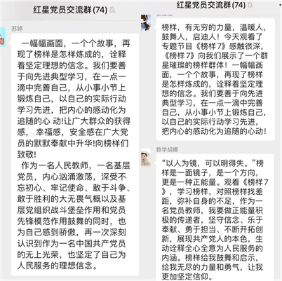全体党员利用电视、电脑、手机等各种方式认真观看了《榜样7》节目,并在各支部群里发送了观看照片及观后感。